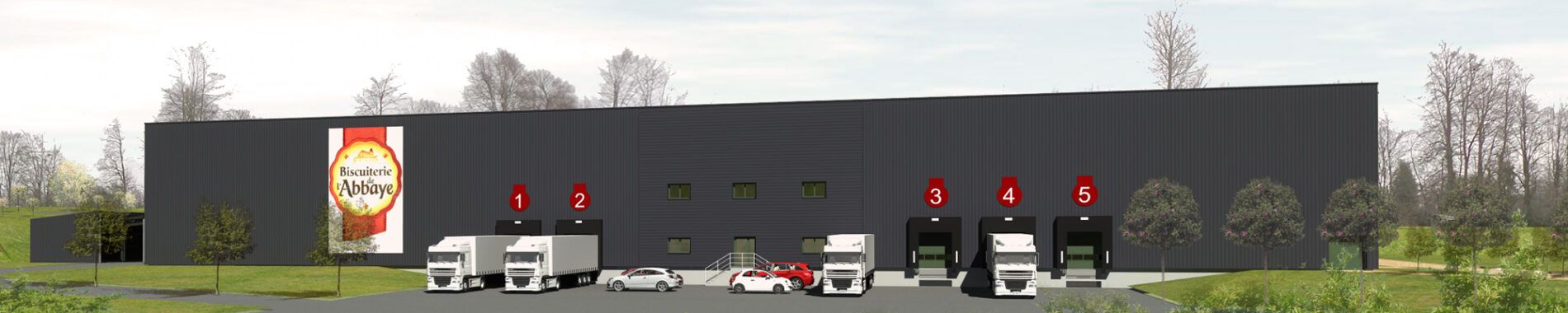 La Biscuiterie de l’Abbaye est en pleine croissance économique. Avec près de 150 000 Biscuits produits par heure, la perpétuelle augmentation des demandes et son entrepôt de stockage situé à Ernée (Mayenne), La Biscuiterie de l’Abbaye se devait de saisir l’opportunité de faire construire un nouvel entrepôt de stockage proche de son site historique à Lonlay l’Abbaye. Cet entrepôt se trouve sur un terrain 26 000 m² et il s’étend sur une surface de 5000 m².