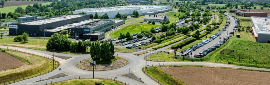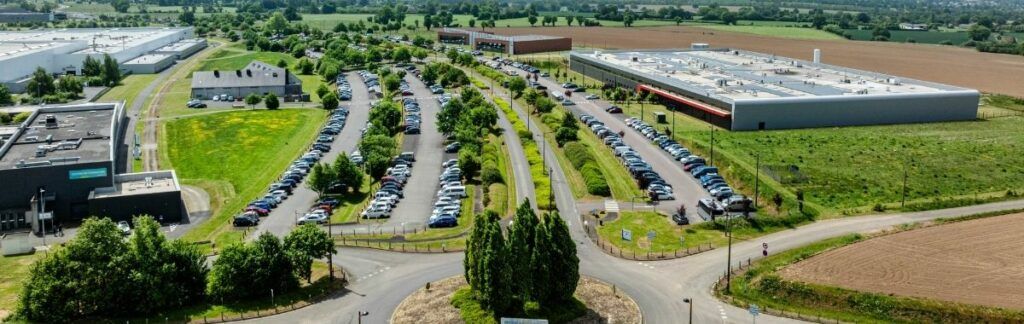 Développé dans un premier temps sur 60 hectares, ce campus industriel rassemble en un même lieu des entreprises leaders de l’industrie — Forvia, Lemoine et Thermocoax —, des centres de recherche et développement (R&D), des établissements d’enseignement supérieur et des laboratoires spécialisés.