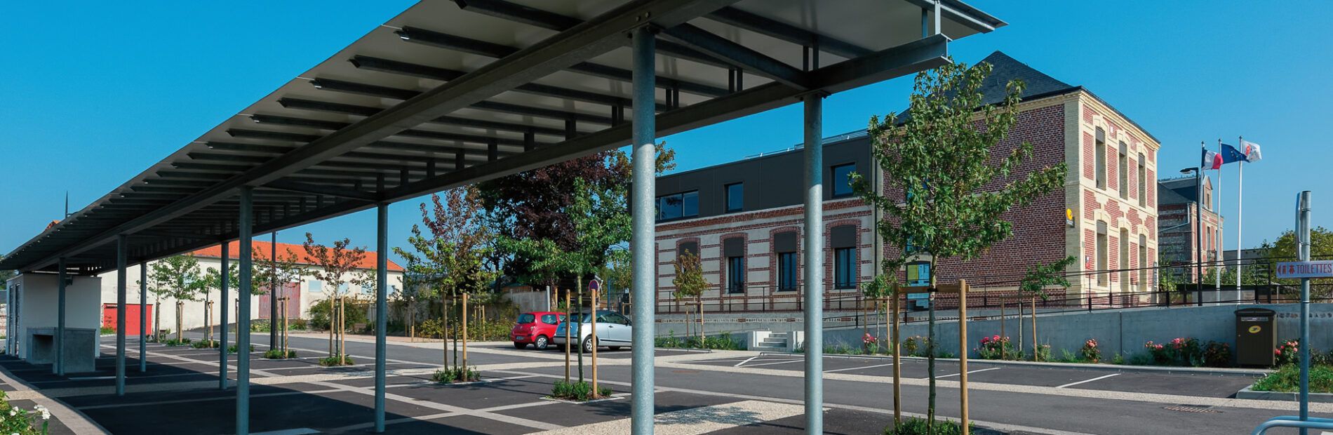 | Superficie | Requalification d’un cœur de bourg et transformation de bâtiments en médiathèque et Mairie |