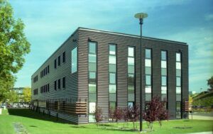 Objet de l’opération : Dans le cadre d’un contrat de promotion, la SEM a réalisé un immeuble de 2000 m² SHON qui héberge désormais un pôle administratif, un pôle formation, un pôle IFAM et un pôle atelier gourmand ouvert au public. Le bâtiment est simple dans ses volumes et le choix des matériaux, fonctionnel, économe et harmonieux. Grâce sa forme parallélépipédique et sa situation, il accentue et ferme la parcelle en réponse aux trois buttes centrales.