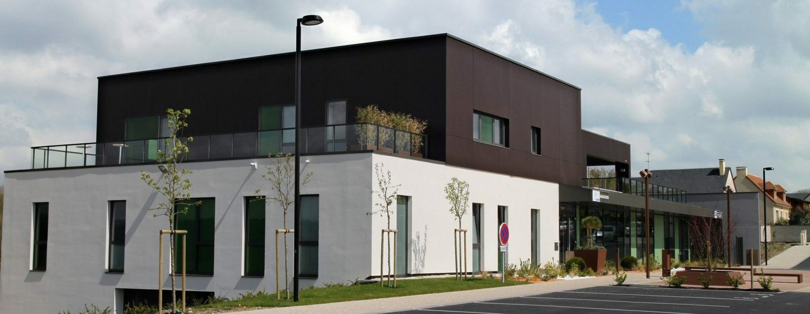 La SHEMA a, dans ce cadre, conduit la réalisation de la Maison des Services intercommunale. L’immeuble conçu par le cabinet d’architectes Billard Durand se développe sur trois niveaux et accueille le siège de la Communauté de Communes ainsi que le secrétariat de la Communauté de Communes, les services techniques, le SPANC, les services scolaires, le point info 14, l’espace public numérique/P@t, le bureau d’accueil pour les demandes de passeports, les permanences de l’ADMR, la sécurité sociale, la mission locale, les associations de réinsertion. Une partie des locaux est également occupée par le Centre Médico Social (CMS) de secteur, incluant les services de la PMI du Conseil Départemental. Ce regroupement de différentes structures a permis de réaliser des économies de fonctionnement importantes tout en améliorant la qualité d’accueil du public. |