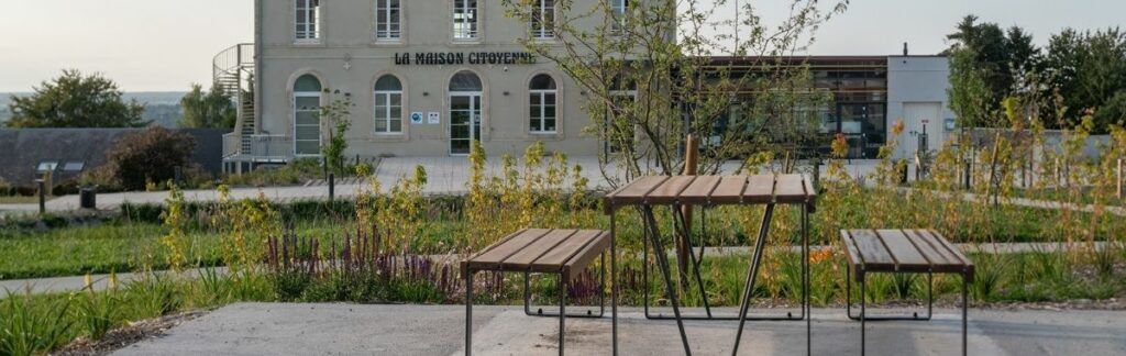 En interface directe avec la place, la Maison Citoyenne a fait l’objet d’une réhabilitation complète et d’une extension dans les locaux de l’ancienne école maternelle. Ouverte au public depuis un an, elle propose sur 825 m² une offre sociale, éducative et culturelle diversifiée : France Services, médiathèque, Micro-Folie, espaces numériques, relais petite enfance, espaces jeunesse.